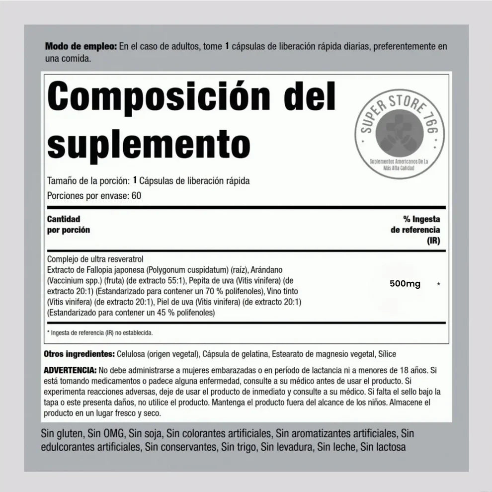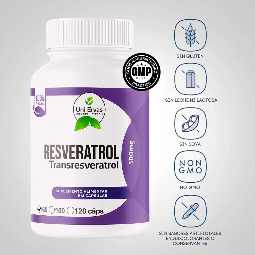 Resveratrol 500mgcombate ese daño desde adentro, protegiendo tu organismo y devolviéndotevitalidad y bienestar.